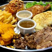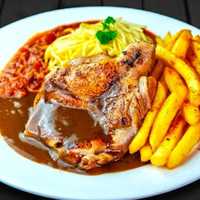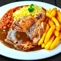 Lamb Grill, Chicken Grill, Spaghetti Bolognaise, Chips, Cheezy Wedges, Black Pepper Sauce & Creamy Mushroom Sauce