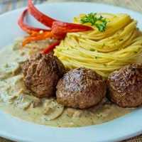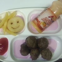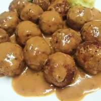Comes with 7pcs homemade meatball, mash potato, salad, sweet corn, and black paper sos. o,