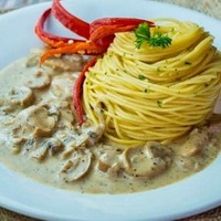 Spaghetti served with 3 pcs Meatball & Creamy Mushroom Sauce