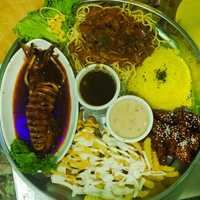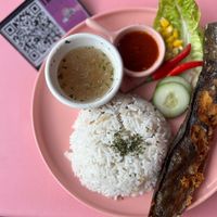 Siakap goreng,spicy sos,nasi kuning, spaggeti ,sos bolonegese,ayam popcorn sos korea,fries ,wedges, sweet corn n salad