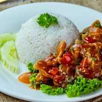 Nasi Ayam served with Sweet Sour Chicken & Salad