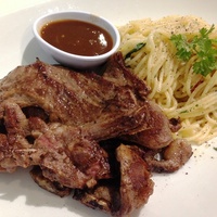 Spaghetti served with Lamb Grill & Black Pepper Sauce