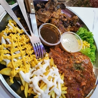 Lamb Grill, Chicken Grill, Spaghetti Bolognaise, Nasi minyak,Chips, Cheezy Wedges, Meatball 2 pcs, Black Pepper Sauce & Craemy Mushroom Sauce